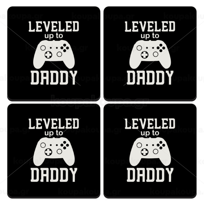 Leveled to Daddy, ΣΕΤ 4 Σουβέρ ξύλινα τετράγωνα (9cm)