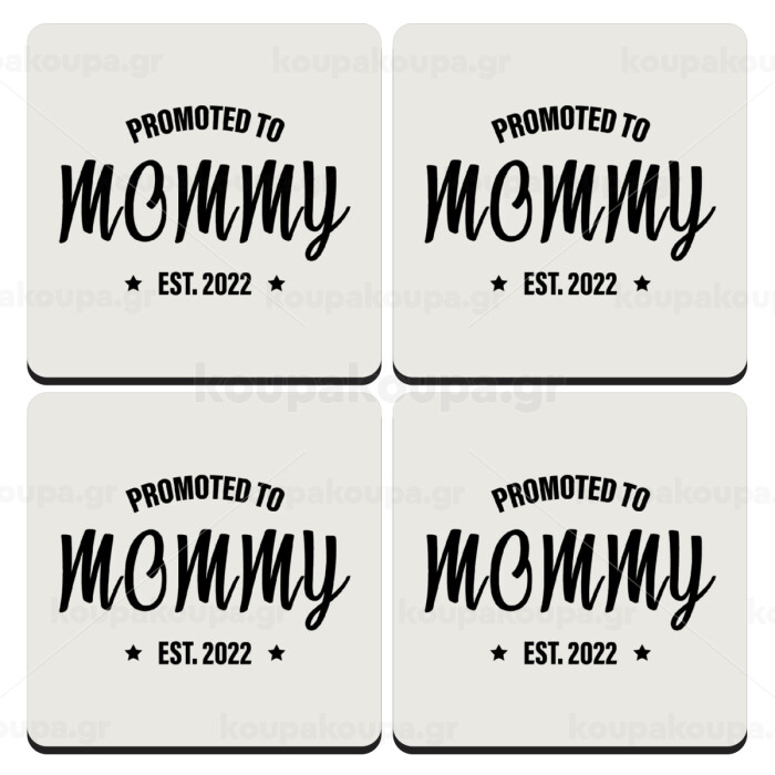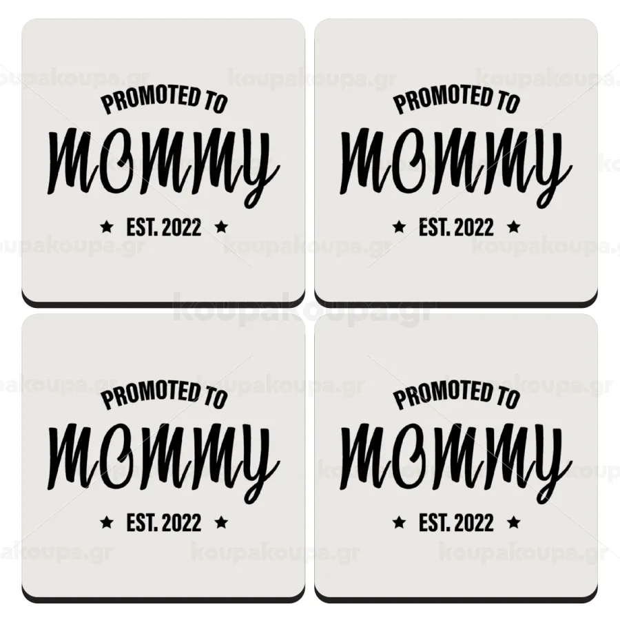Promoted to Mommy, ΣΕΤ 4 Σουβέρ ξύλινα τετράγωνα (9cm)