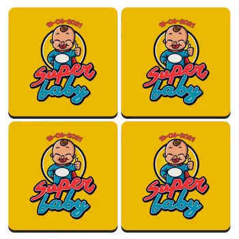 Super baby., ΣΕΤ 4 Σουβέρ ξύλινα τετράγωνα (9cm)