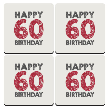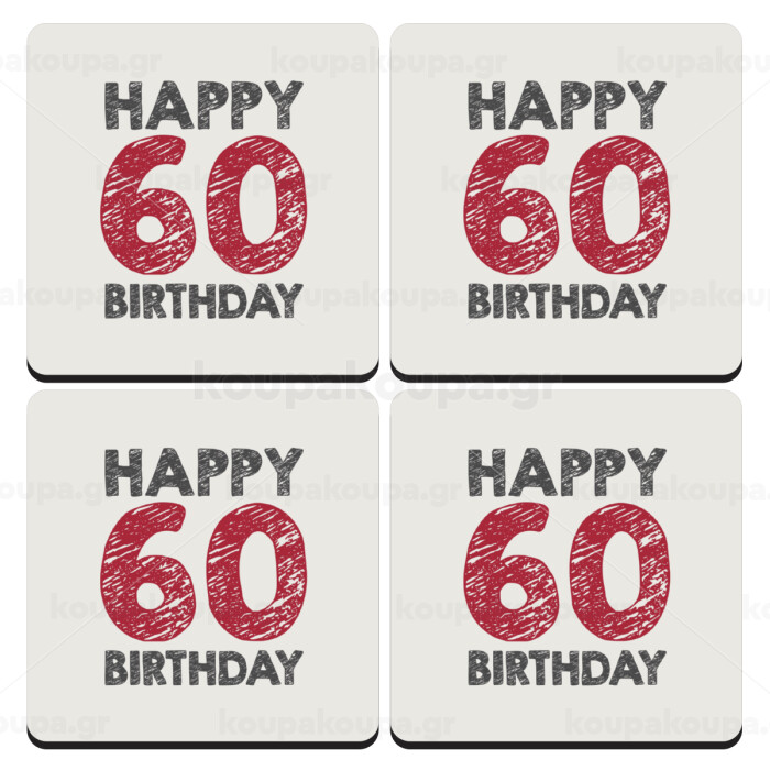 Happy 60 birthday!!!, ΣΕΤ 4 Σουβέρ ξύλινα τετράγωνα (9cm)