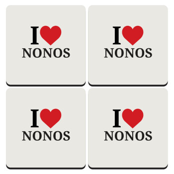 I Love ΝΟΝΟΣ, ΣΕΤ 4 Σουβέρ ξύλινα τετράγωνα (9cm)