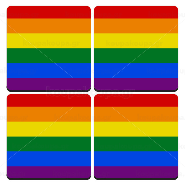 Rainbow flag (LGBT) , ΣΕΤ 4 Σουβέρ ξύλινα τετράγωνα (9cm)