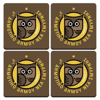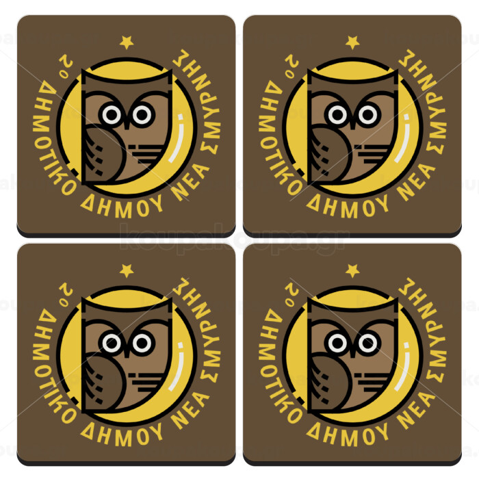 Έμβλημα Σχολικό brown, ΣΕΤ 4 Σουβέρ ξύλινα τετράγωνα (9cm)