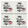 Τhis teacher needs coffee, ΣΕΤ 4 Σουβέρ ξύλινα τετράγωνα (9cm)