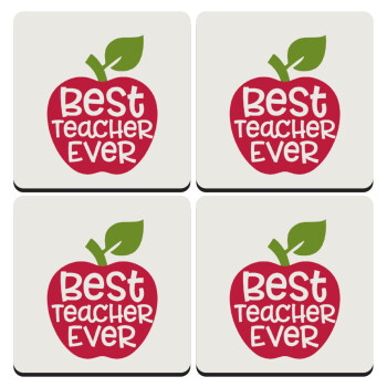best teacher ever, apple!, ΣΕΤ 4 Σουβέρ ξύλινα τετράγωνα (9cm)