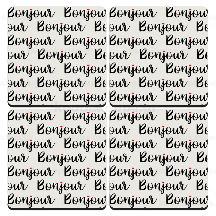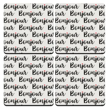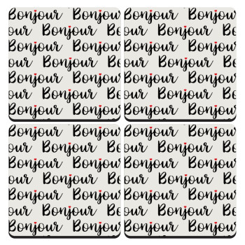 Bonjour, ΣΕΤ 4 Σουβέρ ξύλινα τετράγωνα (9cm)
