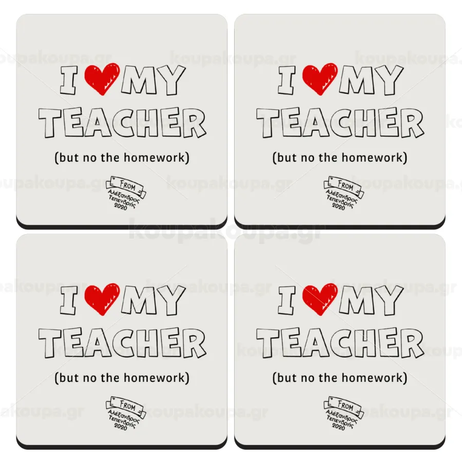 i love my teacher but no the homework outline, ΣΕΤ 4 Σουβέρ ξύλινα τετράγωνα (9cm)