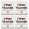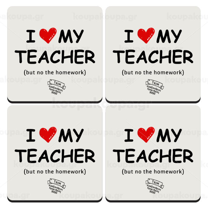 i love my teacher but no the homework, ΣΕΤ 4 Σουβέρ ξύλινα τετράγωνα (9cm)