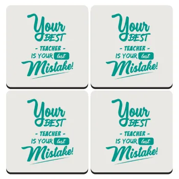 Your best teacher is your last mistake, ΣΕΤ 4 Σουβέρ ξύλινα τετράγωνα (9cm)