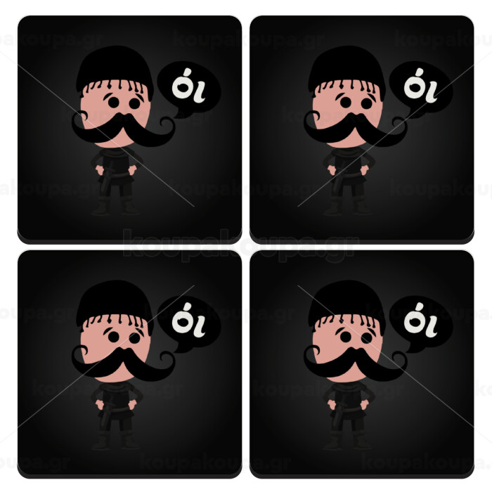 Κρητικός "Οι", ΣΕΤ 4 Σουβέρ ξύλινα τετράγωνα (9cm)