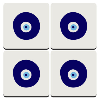 Χάντρα γαλαζιά, ΣΕΤ 4 Σουβέρ ξύλινα τετράγωνα (9cm)