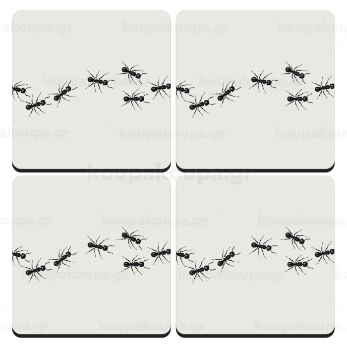 Μυρμήγκια, ΣΕΤ 4 Σουβέρ ξύλινα τετράγωνα (9cm)