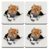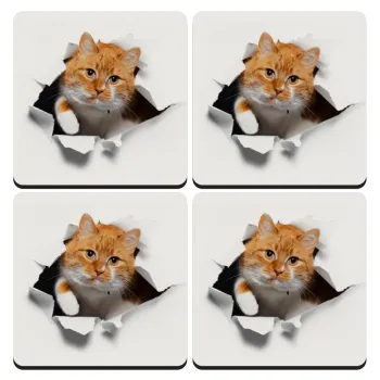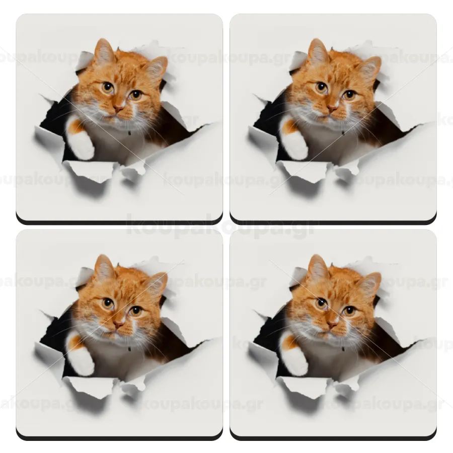 Cat cracked, ΣΕΤ 4 Σουβέρ ξύλινα τετράγωνα (9cm)