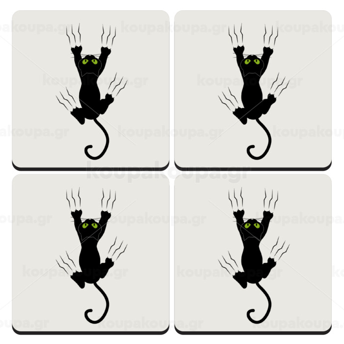 Γατούλα γρατζουνιά, ΣΕΤ 4 Σουβέρ ξύλινα τετράγωνα (9cm)