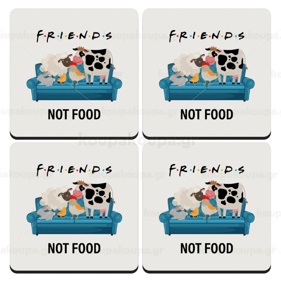 friends, not food, ΣΕΤ 4 Σουβέρ ξύλινα τετράγωνα (9cm)