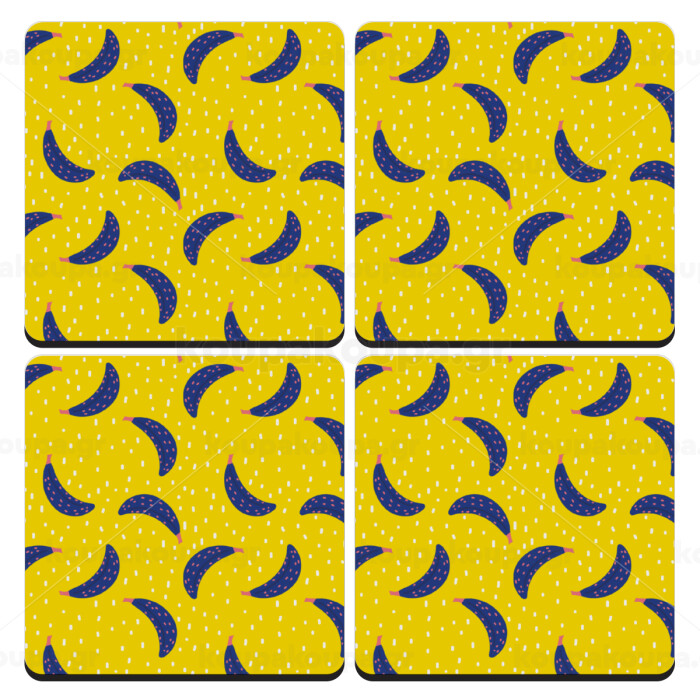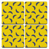 Yellow seamless with blue bananas, ΣΕΤ 4 Σουβέρ ξύλινα τετράγωνα (9cm)