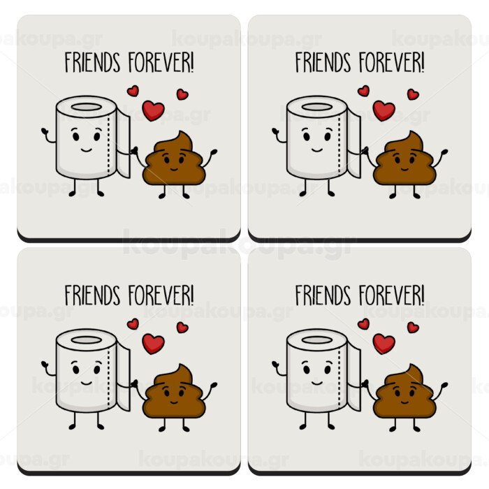Friends forever, ΣΕΤ 4 Σουβέρ ξύλινα τετράγωνα (9cm)