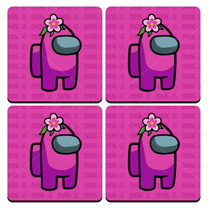 Among US girl, ΣΕΤ 4 Σουβέρ ξύλινα τετράγωνα (9cm)
