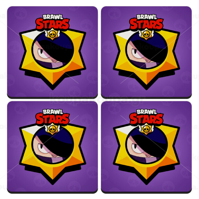 Brawl Stars Edgar, ΣΕΤ 4 Σουβέρ ξύλινα τετράγωνα (9cm)