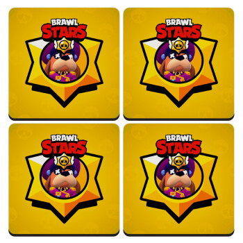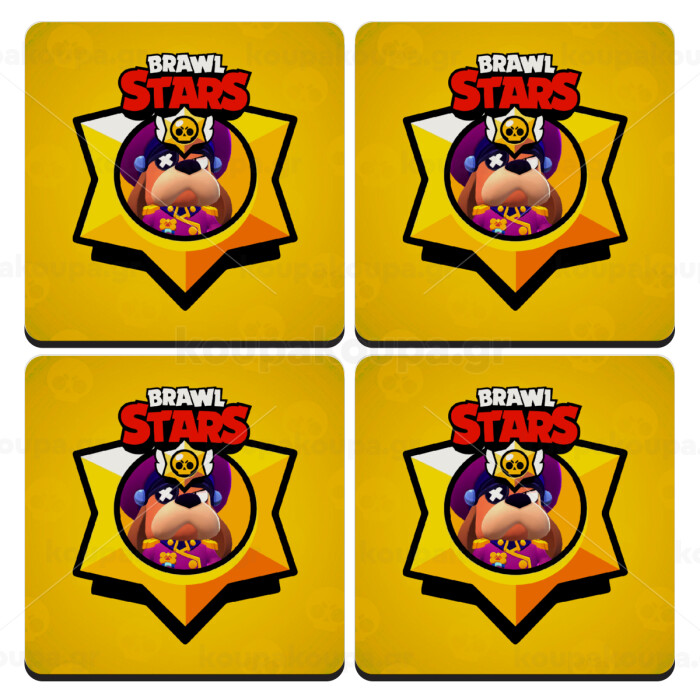Brawl Stars Ruffs, ΣΕΤ 4 Σουβέρ ξύλινα τετράγωνα (9cm)