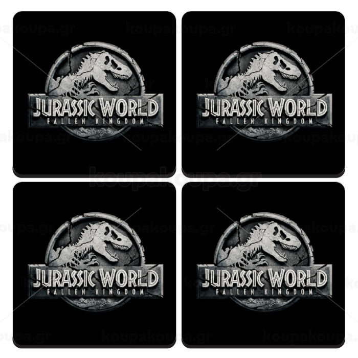 Jurassic world, ΣΕΤ 4 Σουβέρ ξύλινα τετράγωνα (9cm)