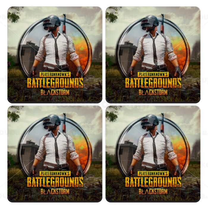 PUBG battleground royale, ΣΕΤ 4 Σουβέρ ξύλινα τετράγωνα (9cm)