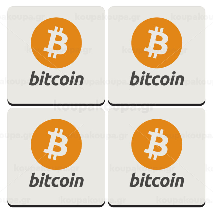 Bitcoin, ΣΕΤ 4 Σουβέρ ξύλινα τετράγωνα (9cm)