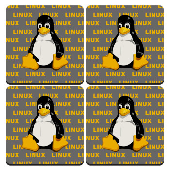 Linux, ΣΕΤ 4 Σουβέρ ξύλινα τετράγωνα (9cm)