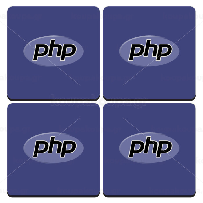 PHP, ΣΕΤ 4 Σουβέρ ξύλινα τετράγωνα (9cm)
