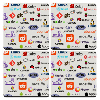 Tech logos, ΣΕΤ 4 Σουβέρ ξύλινα τετράγωνα (9cm)