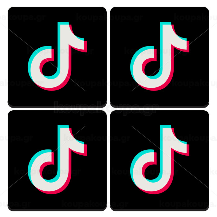 tik tok, ΣΕΤ 4 Σουβέρ ξύλινα τετράγωνα (9cm)
