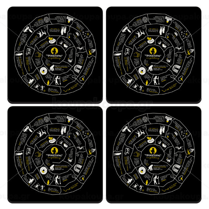 Προχίστορας, ΣΕΤ 4 Σουβέρ ξύλινα τετράγωνα (9cm)