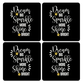 Dream big, Sparkle more, Shine bright, ΣΕΤ 4 Σουβέρ ξύλινα τετράγωνα (9cm)