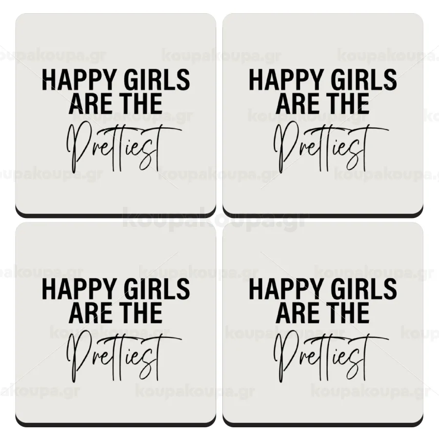 Happy girls are the prettiest, ΣΕΤ 4 Σουβέρ ξύλινα τετράγωνα (9cm)