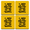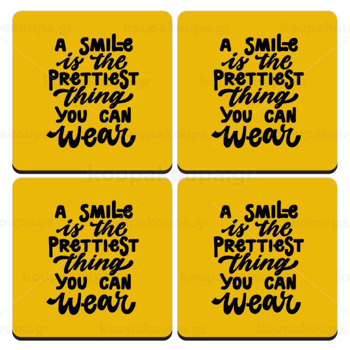 A smile is the prettiest thing you can wear, ΣΕΤ 4 Σουβέρ ξύλινα τετράγωνα (9cm)