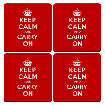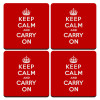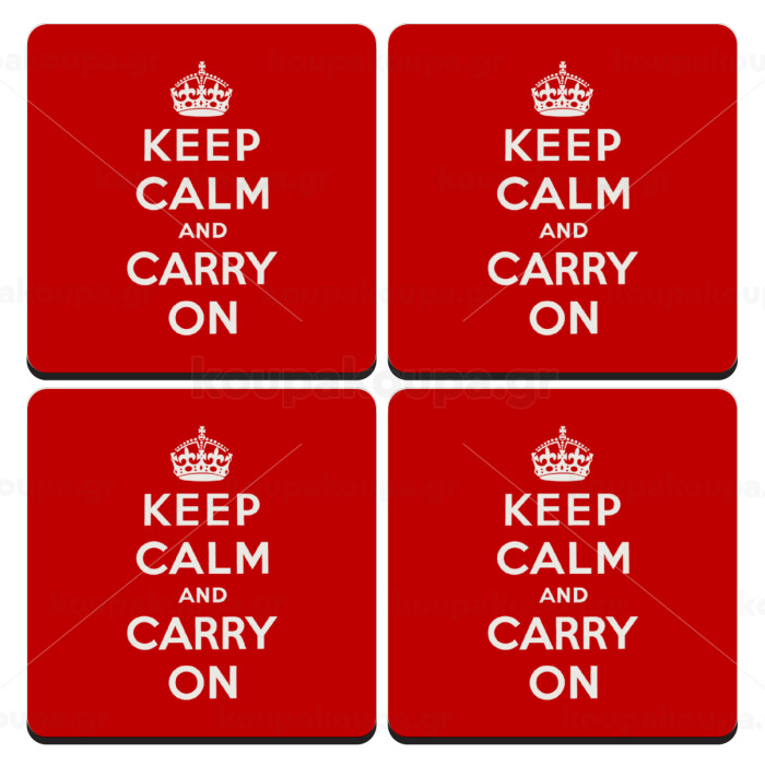 KEEP CALM  and carry on, ΣΕΤ 4 Σουβέρ ξύλινα τετράγωνα (9cm)