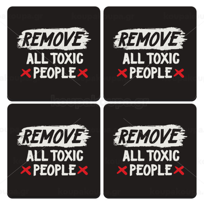 Remove all toxic people, ΣΕΤ 4 Σουβέρ ξύλινα τετράγωνα (9cm)