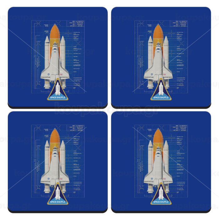 Nasa Space Shuttle, ΣΕΤ 4 Σουβέρ ξύλινα τετράγωνα (9cm)