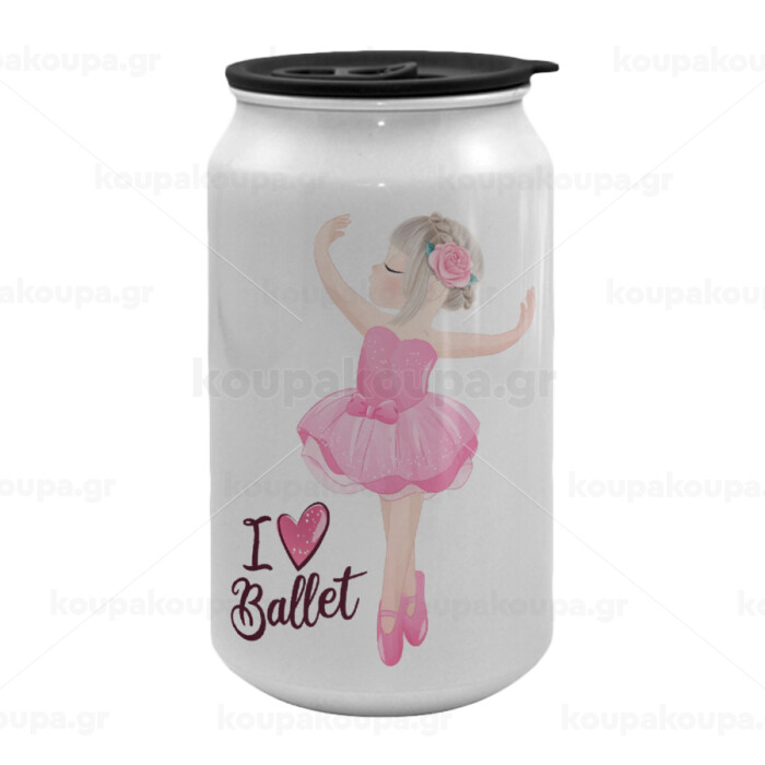 I Love Ballet, Κούπα ταξιδιού μεταλλική με καπάκι (tin-can) 500ml