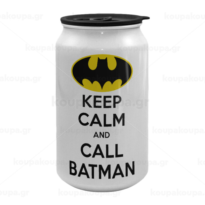 KEEP CALM & Call BATMAN, Κούπα ταξιδιού μεταλλική με καπάκι (tin-can) 500ml