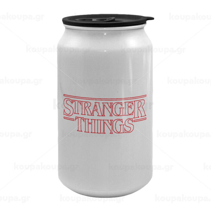 Stranger Things Logo, Κούπα ταξιδιού μεταλλική με καπάκι (tin-can) 500ml
