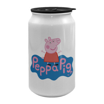 Πέππα το γουρουνάκι μπλε με όνομα, Κούπα ταξιδιού μεταλλική με καπάκι (tin-can) 500ml