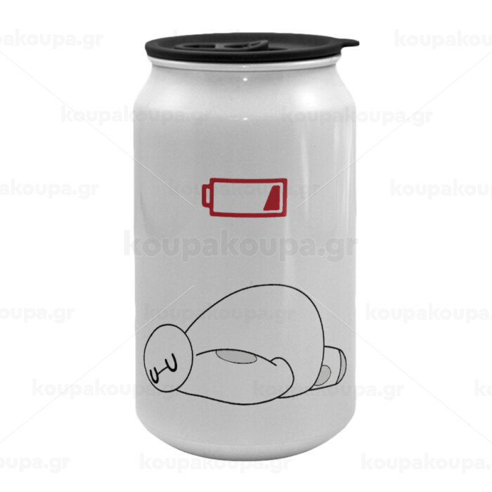 Baymax battery low, Κούπα ταξιδιού μεταλλική με καπάκι (tin-can) 500ml
