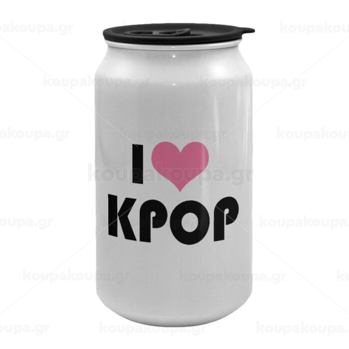 I Love KPOP, Κούπα ταξιδιού μεταλλική με καπάκι (tin-can) 500ml