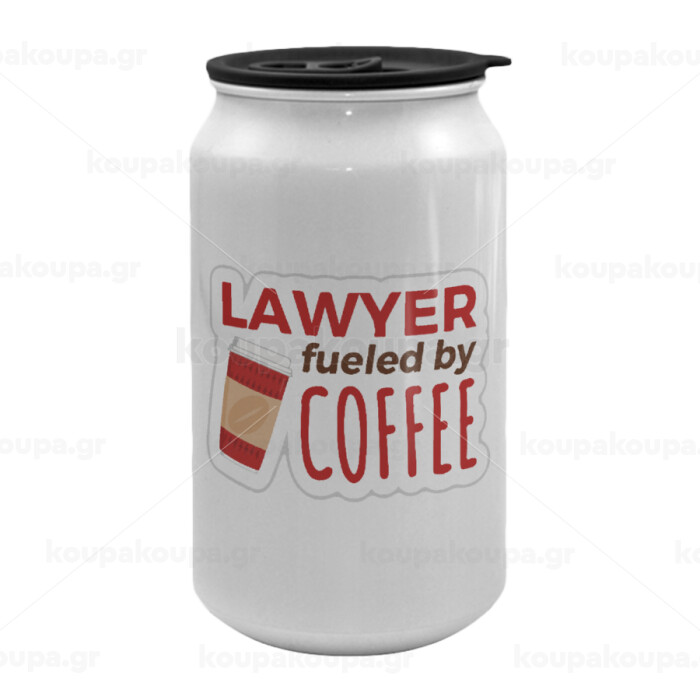 Lawyer fueled by coffee, Κούπα ταξιδιού μεταλλική με καπάκι (tin-can) 500ml