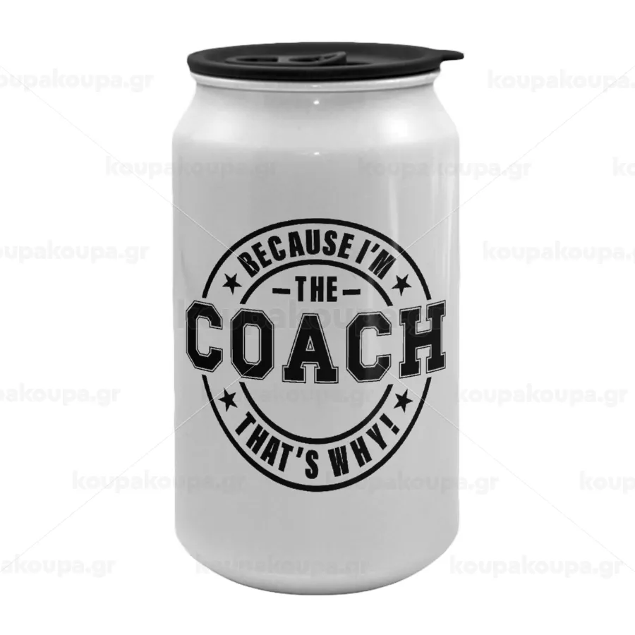 Because i'm the Coach, Κούπα ταξιδιού μεταλλική με καπάκι (tin-can) 500ml
