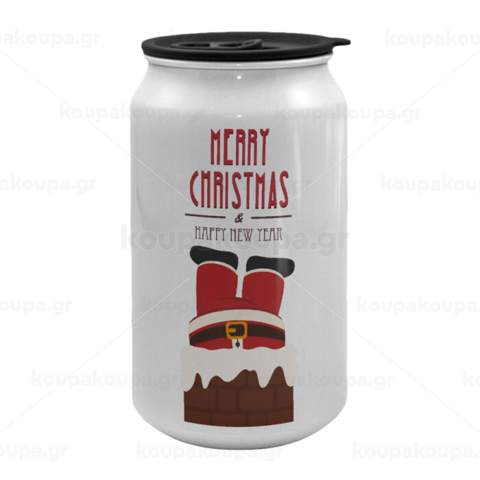 Merry christmas chimney, Κούπα ταξιδιού μεταλλική με καπάκι (tin-can) 500ml
