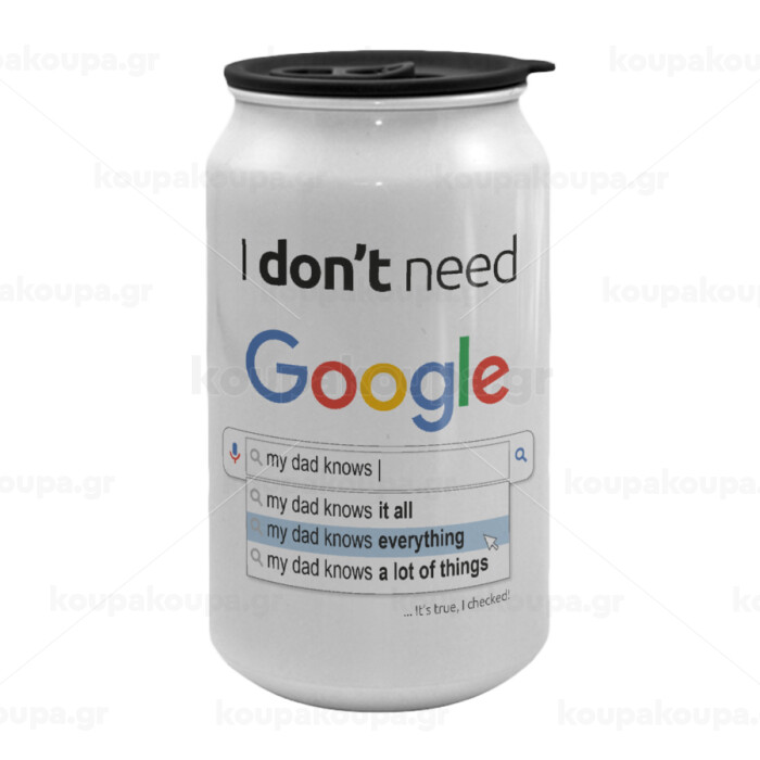 I don't need Google my dad..., Κούπα ταξιδιού μεταλλική με καπάκι (tin-can) 500ml