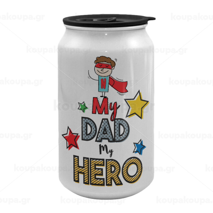 My Dad, my Hero!!!, Κούπα ταξιδιού μεταλλική με καπάκι (tin-can) 500ml