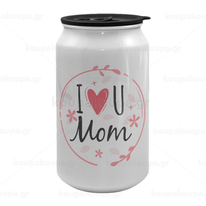 I Love you Mom pink, Κούπα ταξιδιού μεταλλική με καπάκι (tin-can) 500ml
